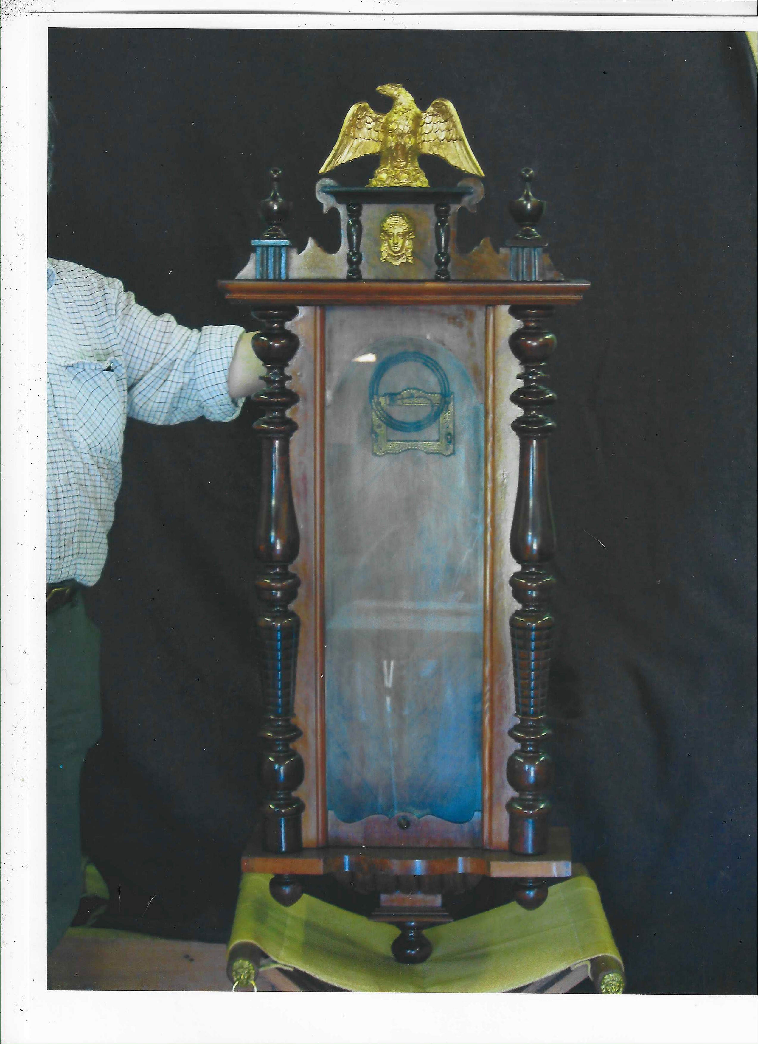 Fortunately there was another clock with it's eagle intact in a house nearby and the owner was prevailed upon to lend the eagle for a cast to be made and a resin replica was cast and placed on the clock.